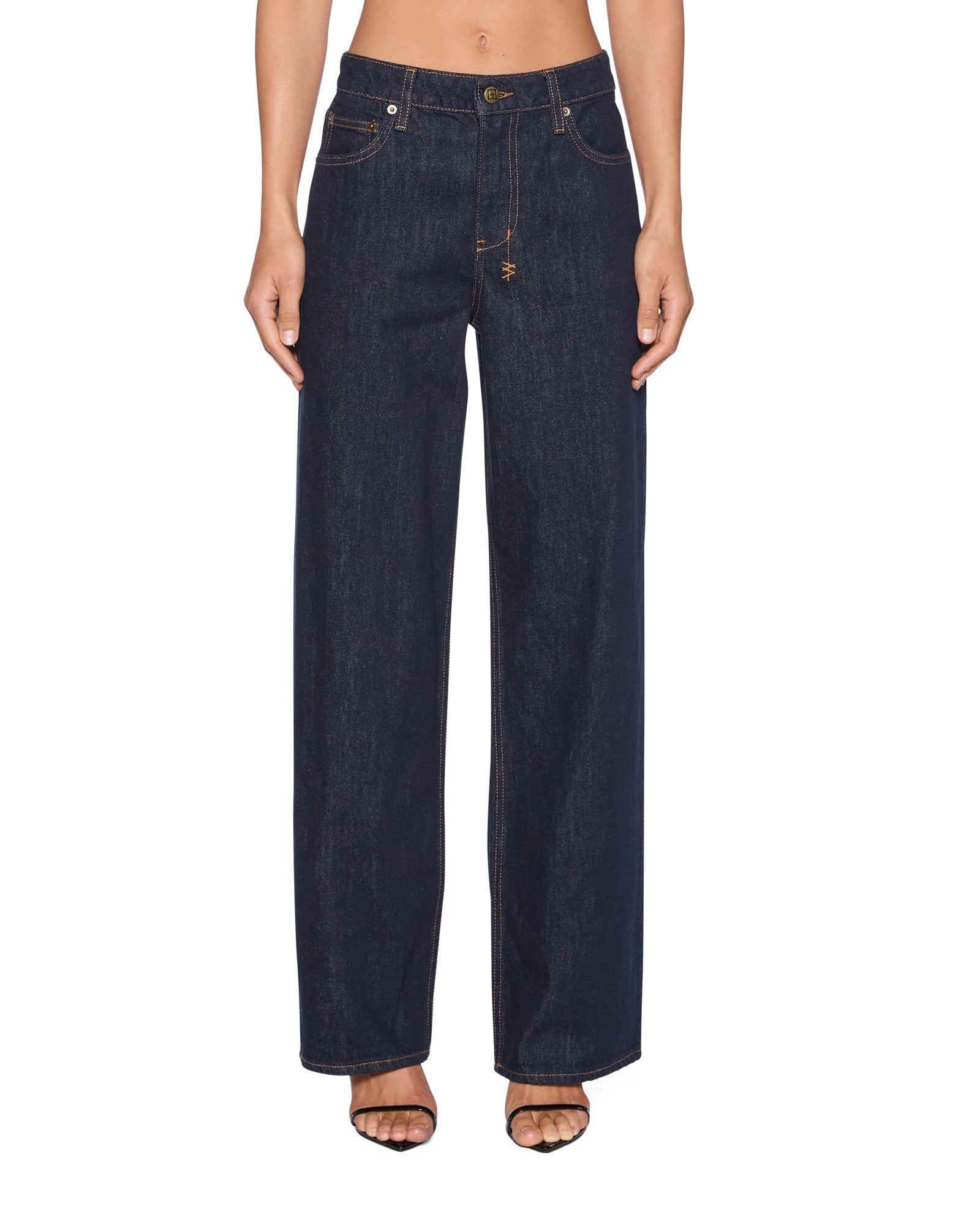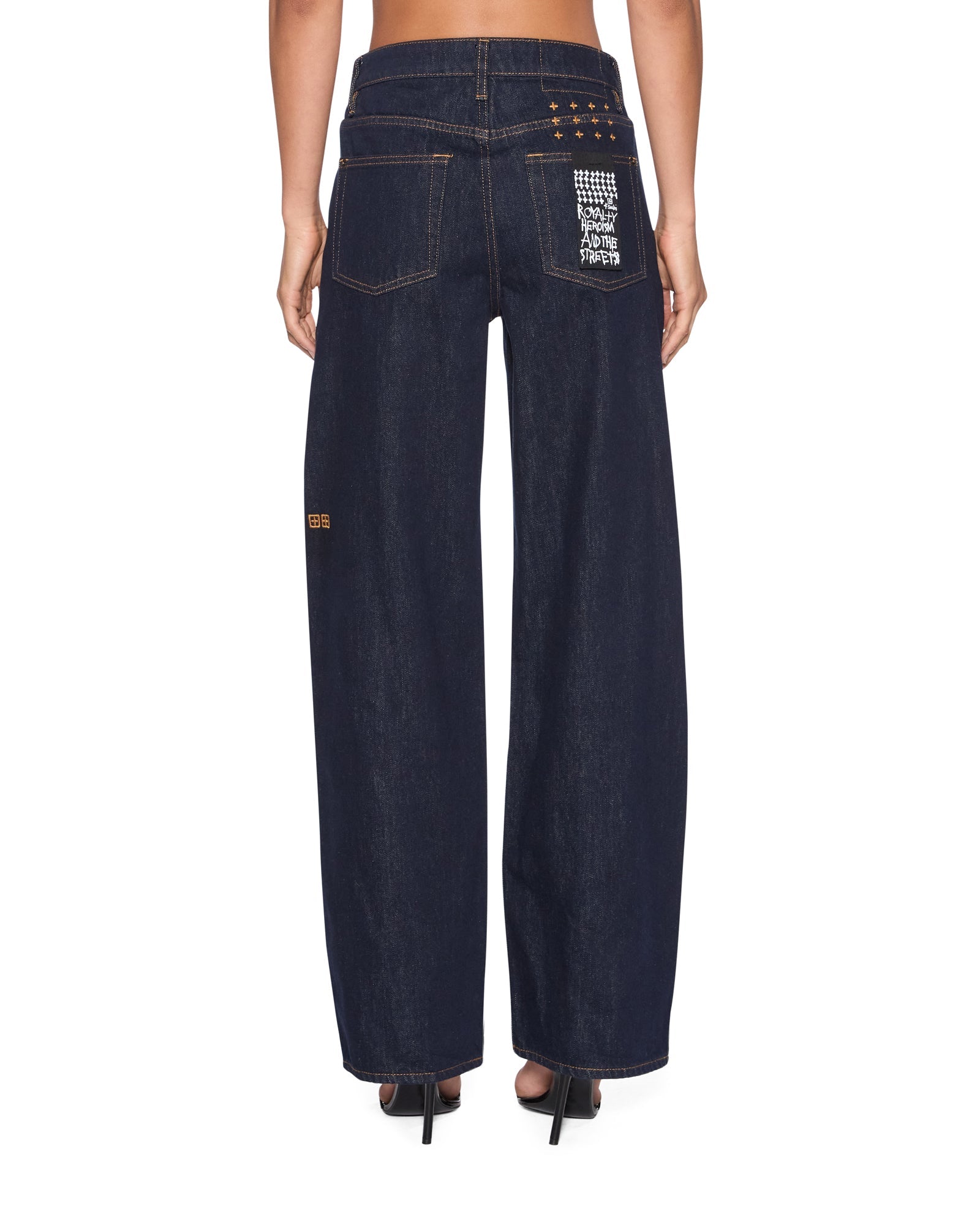 The Empire Jean Original is a relaxed straight leg, full length jean with a true mid-rise designed to be an easy everyday jean. Made from a premium rigid denim in a indigo blue wash. Featuring grinding at the waistband, pockets and hem with sporadic bleach splatters to give a worn in look. Classic five-pocket styling, with Ksubi branded hardware, T-box and 3x4 embroidery, removeable pocket tag attached to wearer's right back pocket.