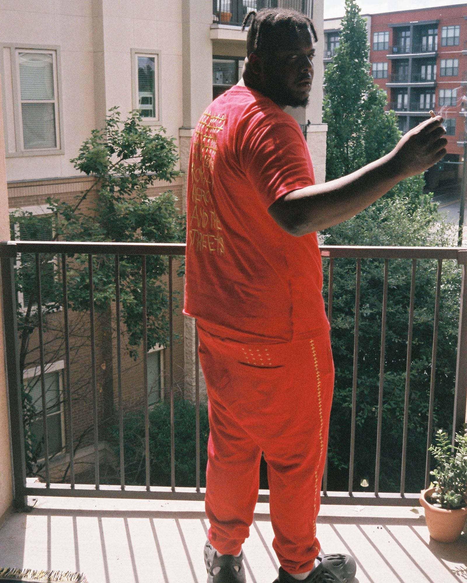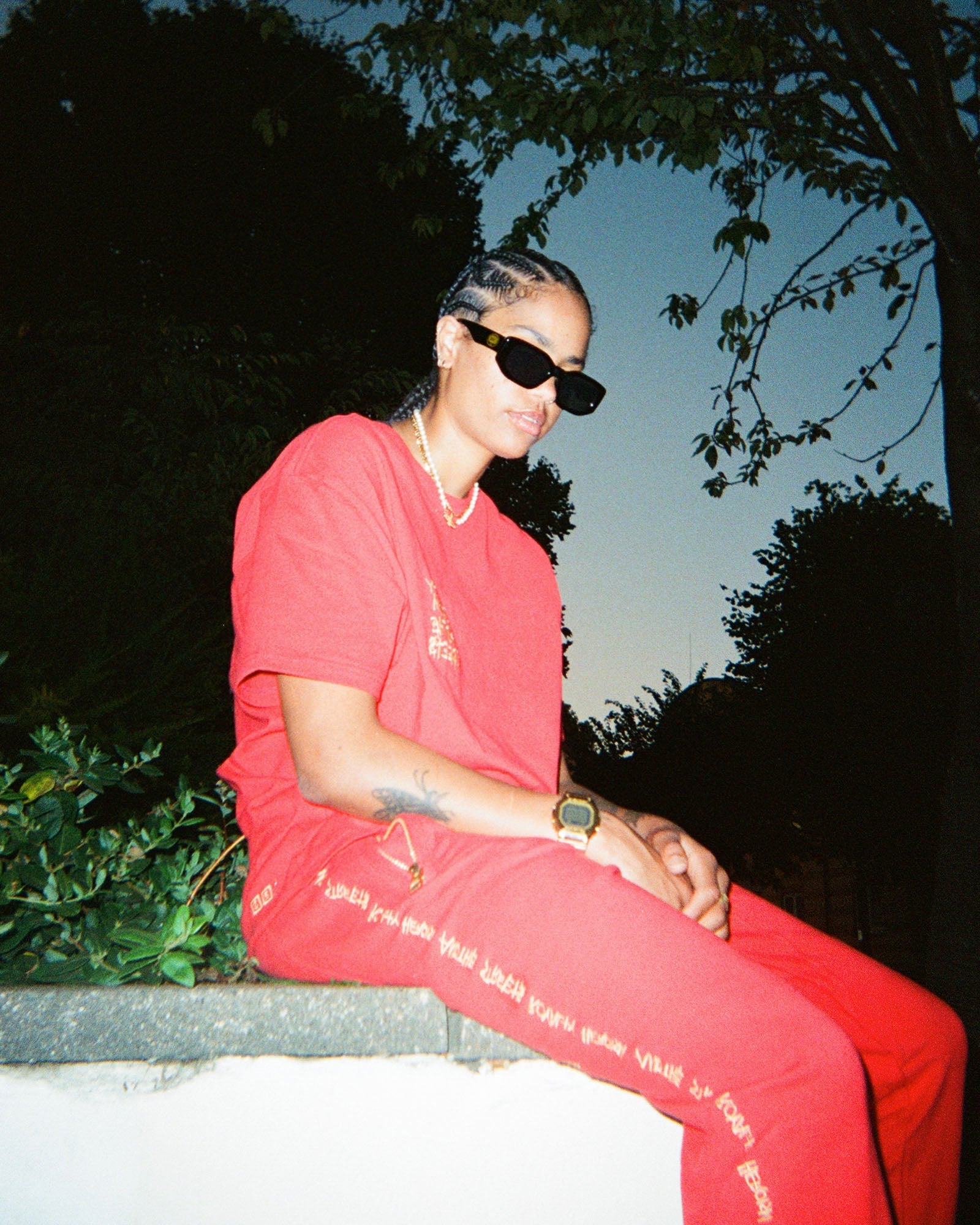 The Ksubi 23 Restore Trak Red is a mid rise, relaxed fit jean with tapered legs and ribbed ankle cuffs. This style is made from premium loopback cotton fleece with a red overdye treatment and an elasticated ribbed waistband, drawstrings, slanted zipper welt pockets and rear patch pockets. Featuring unique gold embroidery across the front and back, gold '23' t-box embroidery, gold hardware, a gold swing tag and signed off with the iconic Ksubi branding.